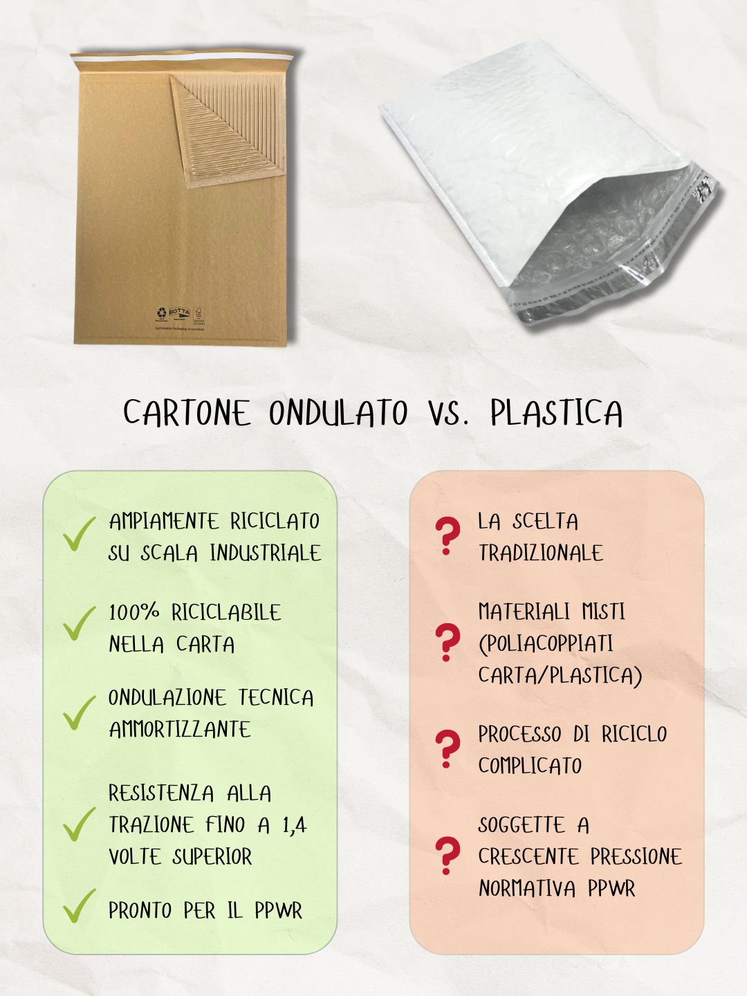 Le buste in cartone ondulato sono sempre più considerate superiori perché offrono una protezione comparabile o migliore, pur essendo completamente riciclabili e conformi alle normative PPWR dell’UE.