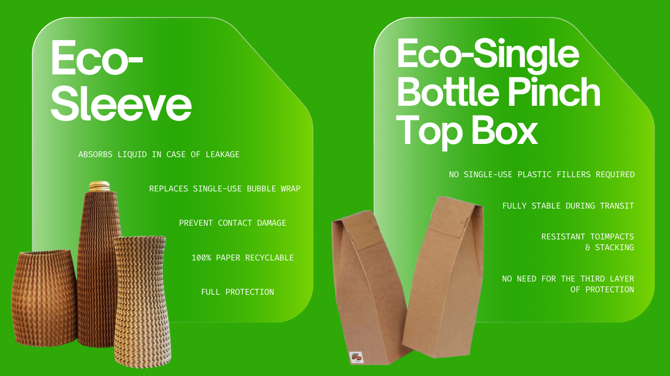 Design compact, single-use-plastic-free and shock-resistant packaging to guarantee the integrity of each bottle during shipment — even in case of accidental breakage.