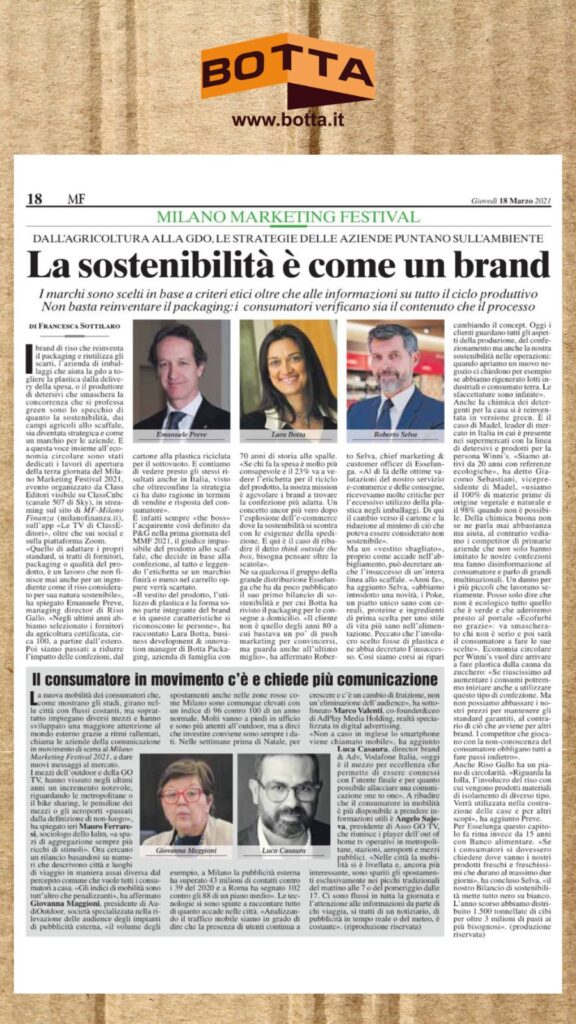 SUSTAINABILITY IS LIKE A BRAND: BOTTA ECOPACKAGING ON MILANO FINANZA