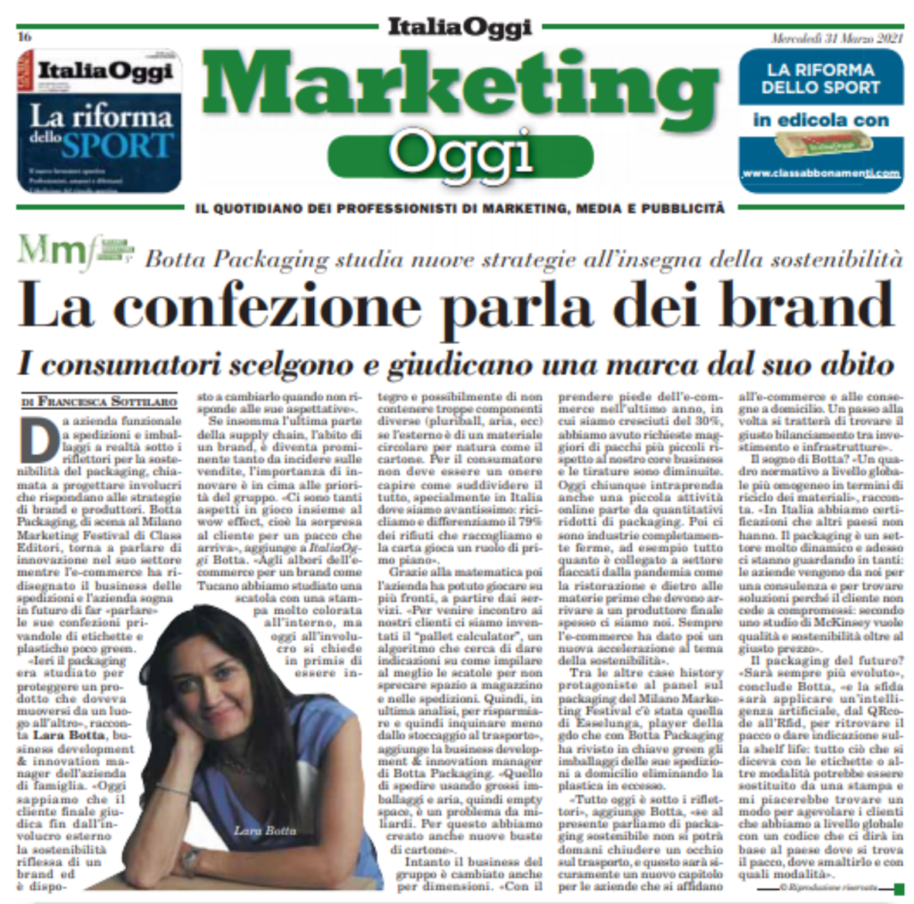 BOTTA ECOPACKAGING on ITALIA OGGI: Packaging & Brand
