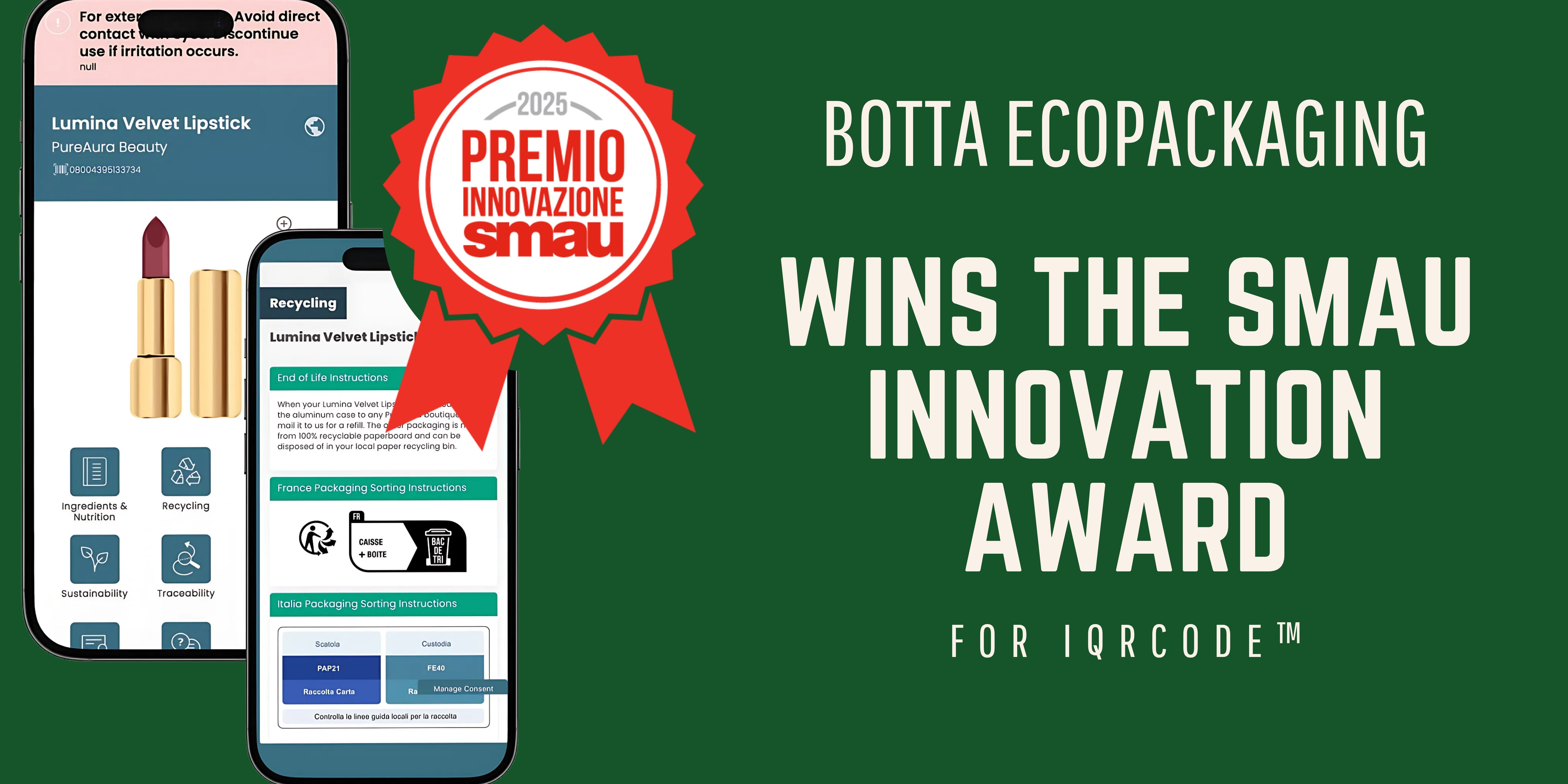 Quest’anno, il premio ha valorizzato BOTTA EcoPackaging e la sua innovazione iQRcode™, una tecnologia che unisce smart packaging e sostenibilità, in linea con le nuove normative europee sull’etichettatura ambientale e con il futuro Digital Product Passport (DPP).